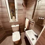 Bu dairede donanımlı mini mutfak ve 2 banyo odası bulunmaktadır.